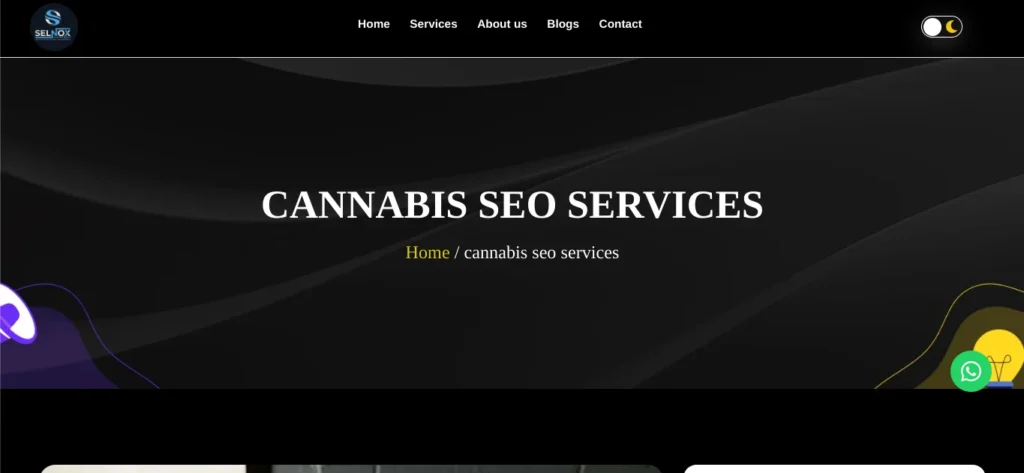 When you hire CannDelta for SEO, you’re working with a partner who looks at your website as part of a larger ecosystem: getting you through the legal requirements for operations, managing messaging and compliance to positioning your brand to be discovered but not a total liability. Their service page shows a complete portfolio of marketing services (including SEO) as part of a full suite of cannabis business service offerings.